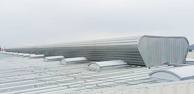 屋脊通風器也稱為通風氣樓,是鋼結(jié)構(gòu)廠房屋頂通風器的一種常用類型,其外形優(yōu)美、圓潤、技術(shù)含量高、通風量大、風阻力小、性價比高、而且還可以通過閥板的啟閉來控制溫度和排氣量,適用性非常強,幾乎可用于任何需要通風的工業(yè)廠房車間。