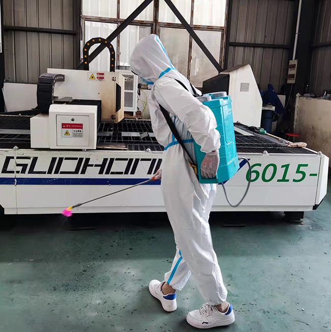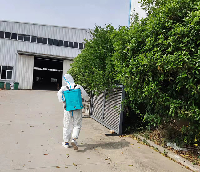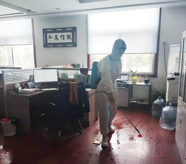 為確保公司各個(gè)部門(mén)在疫情期間的工作安全,防止疫情傳播,做好消毒防護(hù)工作,全公司進(jìn)行了消毒消殺,消毒中為了不傷害員工身體健康,組織員工撤離現(xiàn)場(chǎng),消毒人員佩戴口罩、乳膠手套、身穿防護(hù)服進(jìn)行作業(yè)。