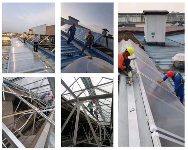 接到訂單任務后,鑫友各個崗位各司其職,無需豪言壯語,默默行動詮釋一切身為鑫友人的職責,保證生產進度與產品質量。售后安裝人員先教育后上崗,不違章作業,嚴格遵守安裝工藝做到精確無誤差。10月12日九百多平米天窗,四百二十臺開窗器等產品已經全部配置完成,安裝人員整理完已退場,等待甲方工程驗收。