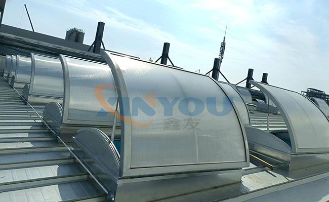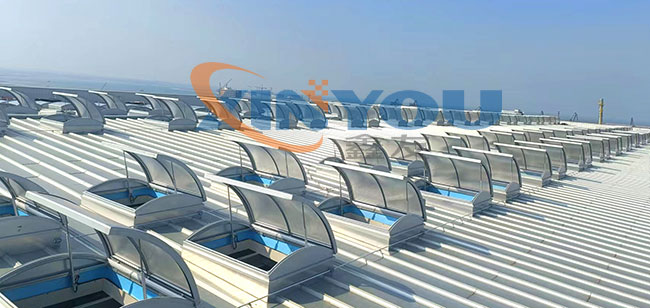 圓拱形的設計,外觀優美、通風排煙兼顧自然采光,開啟角度一般為30度到45度***開啟角度為90°。