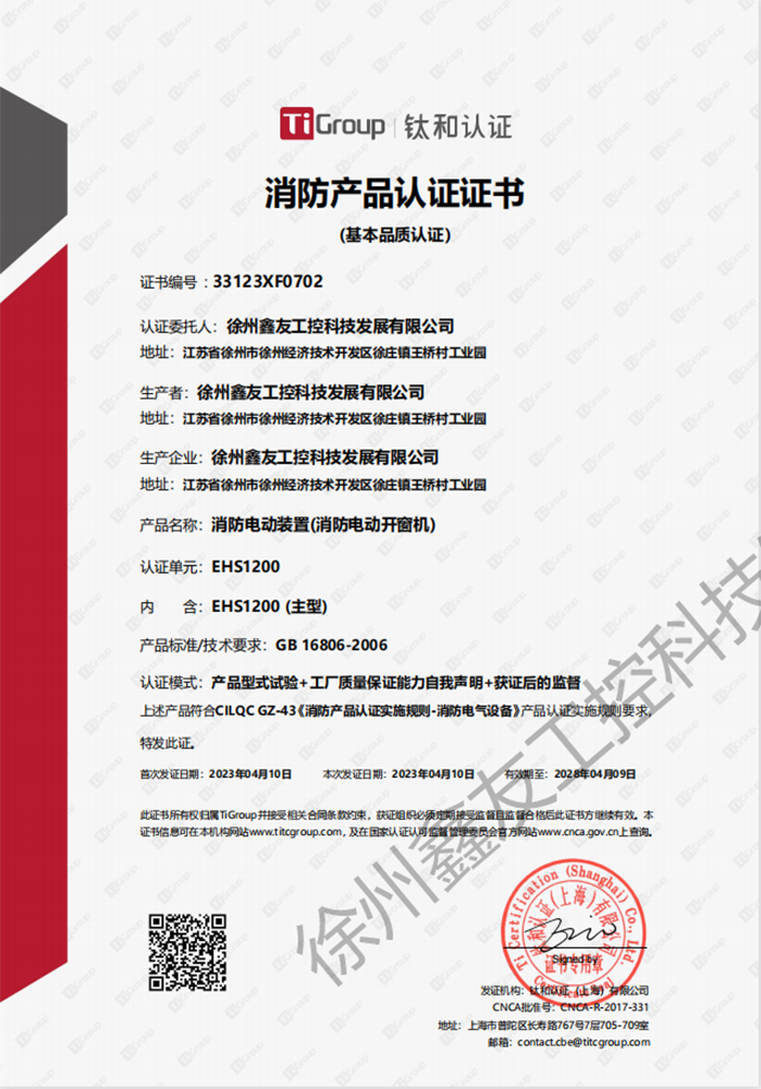 EHS1200消防產品認證證書