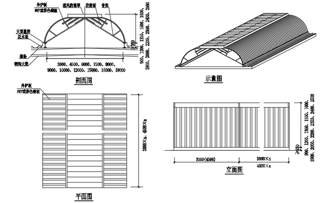 2. 主骨架和屋脊通風天窗基座采用焊接或者螺栓連接,與屋面形成一個整體,具有較好的結構安全性能。