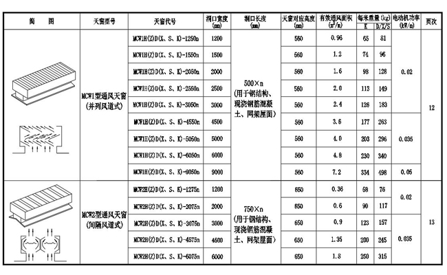 1. MCW1型通風天窗(并列風道式)